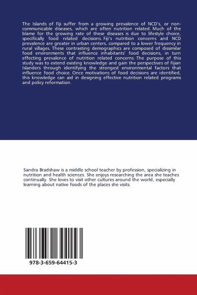 The Islands of Fiji suffer from a growing prevalence of NCD's, or non-communicable diseases, which are often nutrition related. Much of the blame for the growing rate of these diseases is due to lifestyle choice, specifically food related decisions. Fiji's nutrition concerns and NCD prevalence are greater in urban centers, compared to a lower frequency in rural villages. These contrasting demographics are composed of dissimilar food environments that influence inhabitants' food decisions, in turn effecting prevalence of nutrition related concerns. The purpose of this study was to extend existing knowledge and gain the perspectives of Fijian Islanders through identifying the strongest environmental factors that influence food choice. Once motivations of food decisions are identified, this knowledge can aid in designing effective nutrition related programs and policy reformation.
