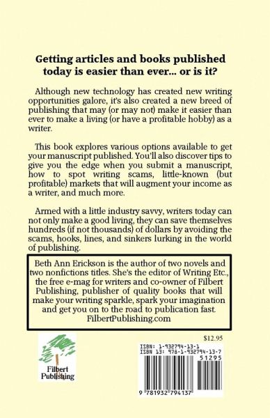 Getting articles and books published today is easier than ever. or is it? Although new technology has created new writing opportunities galore, it's also created a new breed of publishing that may (or may not) make it easier than ever to make a living (or have a profitable hobby) as a writer. This book explores various options available to get your manuscript published. You'll also discover tips to give you the edge when you submit a manuscript, how to spot writing scams, little-known (but profitable) markets that will augment your income as a writer, and much more. Armed with a little industry savvy, writers today can not only make a good living, they can save themselves hundreds (if not thousands) of dollars by avoiding the scams, hooks, lines, and sinkers lurking in the world of publishing.