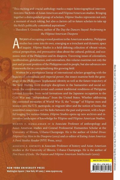 After years of occupying a vexed position in the American academy, Philippine studies has come into its own, emerging as a trenchant and dynamic space of inquiry. Filipino Studies is a field-defining collection of vibrant voices, critical perspectives, and provocative ideas about the cultural, political, and economic state of the Philippines and its diaspora. Traversing issues of colonialism, neoliberalism, globalization, and nationalism, this volume examines not only the past and present position of the Philippines and its people, but also advances new frameworks for re-conceptualizing this growing field. Written by a prestigious lineup of international scholars grappling with the legacies of colonialism and imperial power, the essays examine both the genealogy of the Philippines' hyphenated identity as well as the future trajectory of the field. Hailing from multiple disciplines in the humanities and social sciences, the contributors revisit and contest traditional renditions of Philippine colonial histories, from racial formations and the Japanese occupation to the Cold War and "independence" from the United States. Whether addressing the contested memories of World War II, the "voyage" of Filipino men and women into the U.S. metropole, or migrant labor and the notion of home, the assembled essays tease out the links between the past and present, with a hopeful longing for various futures. Filipino Studies makes bold declarations about the productive frameworks that open up new archives and innovative landscapes of knowledge for Filipino and Filipino American Studies.