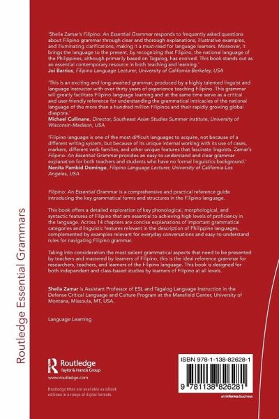 "Sheila Zamar's Filipino: An Essential Grammar responds to frequently asked questions about Filipino grammar through clear and thorough explanations, illustrative examples, and illuminating clarifications, making it a must-read for language learners. Moreover, it brings the language to the present, by recognizing that Filipino, the national language of the Philippines, although primarily based on Tagalog, has evolved. This book stands out as an essential contemporary resource in both teaching and learning."