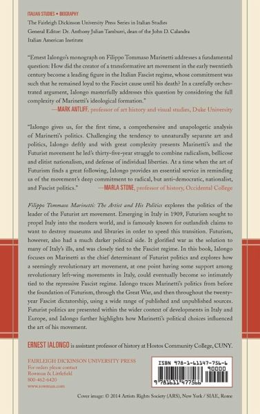Filippo Tommaso Marinetti: The Artist and His Politics is a full-length political biography of the leader of the Italian Futurist art movement Filippo Tommaso Marinetti from the foundation of Futurism in 1909 through its end in the Fascist regime in 1944.