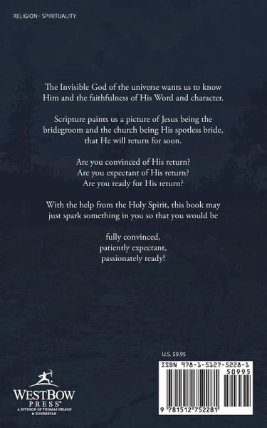 The Invisible God of the universe wants us to know Him and the faithfulness of His Word and character. Scripture paints us a picture of Jesus being the bridegroom and the church being His spotless bride, that He will return for soon. Are you convinced of His return? Are you expectant of His return? Are you ready for His return? With the help from the Holy Spirit, this book may just spark something in you so that you would be fully convinced, patiently expectant, passionately ready!