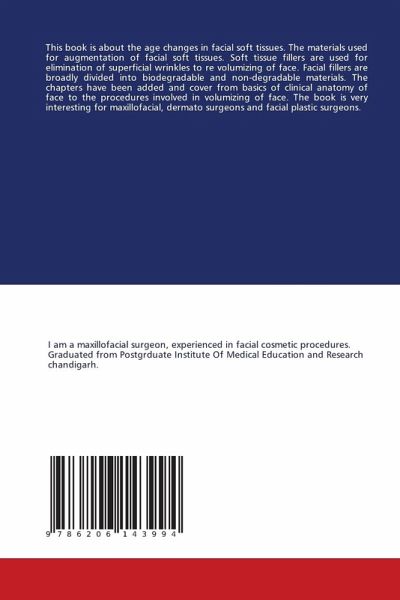 This book is about the age changes in facial soft tissues. The materials used for augmentation of facial soft tissues. Soft tissue fillers are used for elimination of superficial wrinkles to re volumizing of face. Facial fillers are broadly divided into biodegradable and non-degradable materials. The chapters have been added and cover from basics of clinical anatomy of face to the procedures involved in volumizing of face. The book is very interesting for maxillofacial, dermato surgeons and facial plastic surgeons.