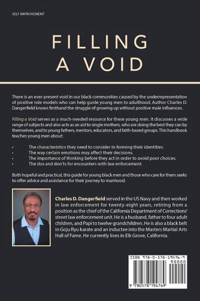 There is an ever-present void in our black communities caused by the underrepresentation of positive role models who can help guide young men to adulthood. Author Charles D. Dangerfield knows firsthand the struggle of growing up without positive male influences. Filling a Void serves as a much-needed resource for these young men. It discusses a wide range of subjects and also acts as an aid to single mothers, who are doing the best they can by themselves, and to young fathers, mentors, educators, and faith-based groups. This handbook teaches young men about: ¿ The characteristics they need to consider in forming their identities. ¿ The way certain emotions may affect their decisions. ¿ The importance of thinking before they act in order to avoid poor choices. ¿ The dos and don'ts for encounters with law enforcement. Both hopeful and practical, this guide for young black men and those who care for them seeks to offer advice and assistance for their journey to manhood.
