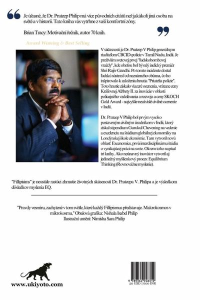 "Je ú¿asné, ¿e Dr. Prateep Philip má více púvodních citát¿ ne¿ jakákoli jiná osoba na sv¿t¿ a v historii. Tato kniha vás vytrhne z väi komfortní zóny. Brian Tracy: Motiväní ¿e¿nik, autor 70 knih." V sú¿asnosti je Dr. Prateep V Philip generálnym radim CBCID-policie v Tamil Nadu, Indi Je provim svetovej prvej kobombonej vrady, kde obetou bol bývalý indický pramer Shri Rajiv Gandhi. Po tomto incidente dostal fudskú sústrast od neznámeho ob¿ana, ¿o ho in¿pirovalo k zalöeniu hnutia "Priatelia policie". Toto hnutie získalo viaceré ocenenia, vrátane ceny Královnej Al¿bety II. za inovácie v oblasti policajného vzdelávania a rozvoja a ceny SKOCH Gold Award-najvy¿¿ie nezávislé civilné ocenenie v Indii. Dr. Prateep V Philip bol prvým vysoko postaveným civilným úradnikom v Indii, ktorý ziskal stipendium Gurukul Chevening na vedenie a excelenciu na ¿túdium globálnej ekonomiky na Londýnskej ¿kole ekonómie. Tamyytvoril novú oblast Exconomics, prvú interdisciplinámu ¿túdiu o vynikajú práci na svete. Okrem toho napisal tri knihy. Ako neúnavný inovátor vytvoril aj jedine¿ný my¿lienkový proces Equilibrium Thinking (Rovnová¿ne myslenie). "Fillipsis" je neustále rastúci zhnutie zivotných skúsenosti Dr. Pratopa V. Philipa a je výsledkom dosledkov myslenia EQ