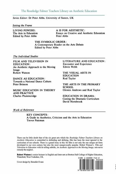 Robert Watson, At The London SchoolAt The London School of Film Technique (The London International Film School), Robert Watson received a vocational training which he has come to regard, over the last twenty years, as a model of disciplined creativity in education. His sense of the underlying significance of basic film conventions has evolved and been strengthened through a decade of teaching in comprehensive schools and, since 1986, his work at Bretton Hall.