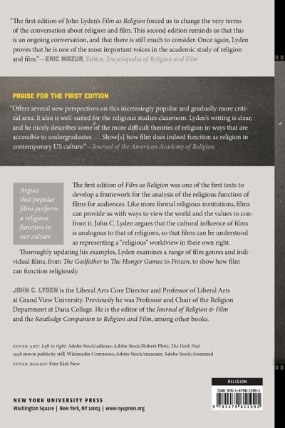 Argues that popular films perform a religious function in our culture The first edition of Film as Religion was one of the first texts to develop a framework for the analysis of the religious function of films for audiences. Like more formal religious institutions, films can provide us with ways to view the world and the values to confront it. Lyden argues that the cultural influence of films is analogous to that of religions, so that films can be understood as representing a "religious" worldview in their own right. Thoroughly updating his examples, Lyden examines a range of film genres and individual films, from The Godfather to The Hunger Games to Frozen, to show how film can function religiously.