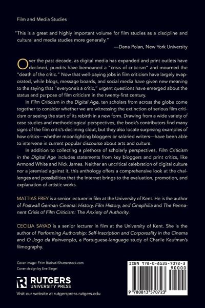 Over the past decade, as digital media has expanded and print outlets have declined, pundits have bemoaned a “crisis of criticism” and mourned the “death of the critic.” Now that well-paying jobs in film criticism have largely evaporated, while blogs, message boards, and social media have given new meaning to the saying that “everyone’s a critic,” urgent questions have emerged about the status and purpose of film criticism in the twenty-first century. In Film Criticism in the Digital Age, ten scholars from across the globe come together to consider whether we are witnessing the extinction of serious film criticism or seeing the start of its rebirth in a new form. Drawing from a wide variety of case studies and methodological perspectives, the book’s contributors find many signs of the film critic’s declining clout, but they also locate surprising examples of how critics-whether moonlighting bloggers or salaried writers-have been able to intervene in current popular discourse about arts and culture. In addition to collecting a plethora of scholarly perspectives, Film Criticism in the Digital Age includes statements from key bloggers and print critics, like Armond White and Nick James. Neither an uncritical celebration of digital culture nor a jeremiad against it, this anthology offers a comprehensive look at the challenges and possibilities that the Internet brings to the evaluation, promotion, and explanation of artistic works.