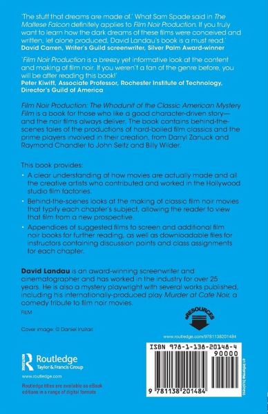 "'The stuff that dreams are made of.' What Sam Spade said in The Maltese Falcon definitely applies to Film Noir Production. If you truly want to learn how the dark dreams of these films were conceived and written, let alone produced, David Landau's book is a must read."
