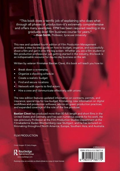 The new edition features updated information on contracts, permits, and insurance; special tips for low-budget filmmaking; new information on digital workflows and production software; advice on green production practices; and expanded coverage of the role of the line producer.