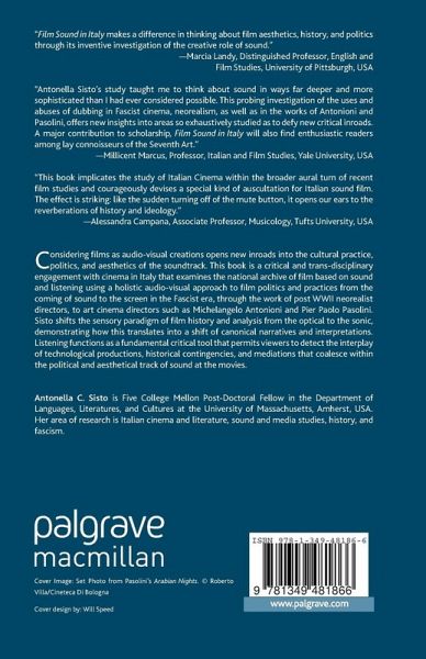 "Antonella Sisto's study taught me to think about sound in ways far deeper and more sophisticated than I had ever considered possible. This probing investigation of the uses and abuses of dubbing in Fascist cinema, neorealism, as well as in the works of Antonioni and Pasolini, offers new insights into areas so exhaustively studied as to defy new critical inroads. A major contribution to scholarship, Film Sound in Italy will also find enthusiastic readers among lay connoisseurs of the Seventh Art. - Millicent Marcus, Professor, Italian and Film Studies, Yale University, USA