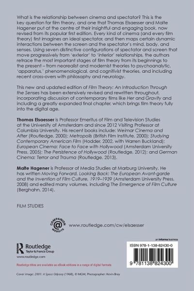 What is the relationship between cinema and spectator? This is the key question for film theory, and one that Thomas Elsaesser and Malte Hagener put at the center of their insightful and engaging book, now revised from its popular first edition. Every kind of cinema (and every film theory) first imagines an ideal spectator, and then maps certain dynamic interactions between the screen and the spectator's mind, body and senses. Using seven distinctive configurations of spectator and screen that move progressively from 'exterior' to 'interior' relationships, the authors retrace the most important stages of film theory from its beginnings to the present-from neo-realist and modernist theories to psychoanalytic, 'apparatus,' phenomenological and cognitivist theories, and including recent cross-overs with philosophy and neurology.