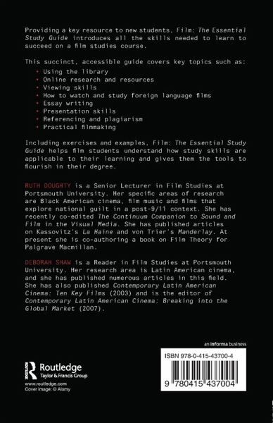 Introduces the skills needed to succeed on a film studies course. This guide covers key topics such as: using the library; online research and resources; viewing skills; how to watch and study foreign language films; essay writing; presentation skills; referencing and plagiarism; and, practical filmmaking. It includes exercises and examples.