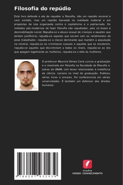 Este livro defende o ato de repudiar a filosofia, não um repúdio visceral e sem sentido, mas um repúdio baseado na realidade material e em propostas de luta organizada contra o capitalismo e o patriarcado. Os métodos pós-modernos de fazer filosofia são repudiados, pois só levam à desmobilização social; Repudia-se o abuso sexual de crianças e aqueles que tentam justificá-lo, repudia-se aqueles que lucram com os rendimentos do povo trabalhador, repudia-se a classe dominante que mantém a população na miséria, repudia-se os criminosos sexuais e aqueles que os encobrem, repudia-se aqueles que discriminam a todos os níveis, repudia-se as leis que apagam legalmente as mulheres, repudia-se o ódio às mulheres.