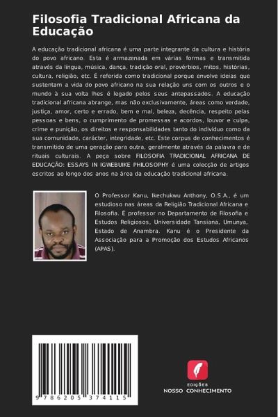 A educação tradicional africana é uma parte integrante da cultura e história do povo africano. Esta é armazenada em várias formas e transmitida através da língua, música, dança, tradição oral, provérbios, mitos, histórias, cultura, religião, etc. É referida como tradicional porque envolve ideias que sustentam a vida do povo africano na sua relação uns com os outros e o mundo à sua volta lhes é legado pelos seus antepassados. A educação tradicional africana abrange, mas não exclusivamente, áreas como verdade, justiça, amor, certo e errado, bem e mal, beleza, decência, respeito pelas pessoas e bens, o cumprimento de promessas e acordos, louvor e culpa, crime e punição, os direitos e responsabilidades tanto do indivíduo como da sua comunidade, carácter, integridade, etc. Este corpus de conhecimentos é transmitido de uma geração para outra, geralmente através da palavra e de rituais culturais. A peça sobre FILOSOFIA TRADICIONAL AFRICANA DE EDUCAÇÃO: ESSAYS IN IGWEBUIKE PHILOSOPHY é uma colecção de artigos escritos ao longo dos anos na área da educação tradicional africana.