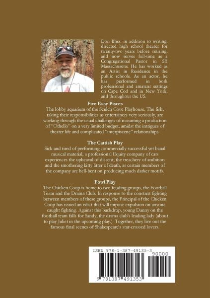 Five Easy Pisces - The lobby aquarium fish of the Sculch Cove Playhouse are working through the usual challenges of mounting a production of "Othello" on a very limited budget, amidst the intrigues of theater life and complicated "interpiscene" relationships. The Cattish Play - Sick of performing commercially successful yet banal musical material, a professional company of cats experiences the upheaval of dissent, the treachery of ambition and the smothering kitty litter of death, as certain members of the company are hell-bent on producing much darker motifs. Fowl Play - The Chicken Coop is home to two feuding groups, and in response to the constant fighting the Coop leader has issued an edict that will impose expulsion on anyone caught fighting. Against this backdrop, young Danny on the football team falls for Sandy, the drama club's leading lady (about to play Juliet in the upcoming play.) Together, they live out the famous final scenes of Shakespeare's star-crossed lovers.