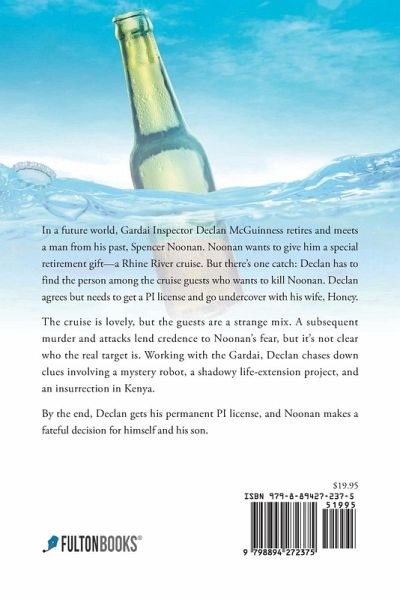 In a future world, Gardai Inspector Declan McGuinness retires and meets a man from his past, Spencer Noonan. Noonan wants to give him a special retirement gift--a Rhine River cruise. But there's one catch: Declan has to find the person among the cruise guests who wants to kill Noonan. Declan agrees but needs to get a PI license and go undercover with his wife, Honey.The cruise is lovely, but the guests are a strange mix. A subsequent murder and attacks lend credence to Noonan's fear, but it's not clear who the real target is. Working with the Gardai, Declan chases down clues involving a mystery robot, a shadowy life-extension project, and an insurrection in Kenya.By the end, Declan gets his permanent PI license, and Noonan makes a fateful decision for himself and his son.