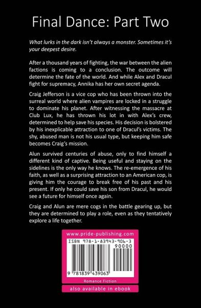 What lurks in the dark isn't always a monster. Sometimes it's your deepest desire. After a thousand years of fighting, the war between the alien factions is coming to a conclusion. The outcome will determine the fate of the world. And while Alex and Dracul fight for supremacy, Annika has her own secret agenda. Craig Jefferson is a vice cop who has been thrown into the surreal world where alien vampires are locked in a struggle to dominate his planet. After witnessing the massacre at Club Lux, he has thrown his lot in with Alex's crew, determined to help save his species. His decision is bolstered by his inexplicable attraction to one of Dracul's victims. The shy, abused man is not his usual type, but keeping him safe becomes Craig's mission. Alun survived centuries of abuse, only to find himself a different kind of captive. Being useful and staying on the sidelines is the only way he knows. The re-emergence of his faith, as well as a surprising attraction to an American cop, is giving him the courage to break free of his past and his present. If only he could save his son from Dracul, he would see a future for himself once again. Craig and Alun are mere cogs in the battle gearing up, but they are determined to play a role, even as they tentatively explore a life together.