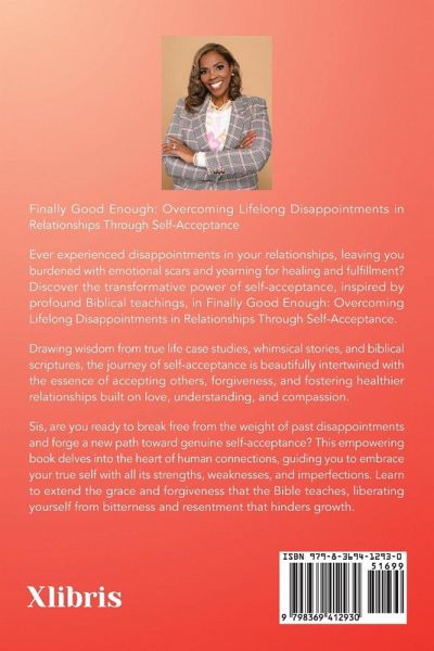 Finally Good Enough: Overcoming Lifelong Disappointments in Relationships Through Self-Acceptance Ever experienced disappointments in your relationships, leaving you burdened with emotional scars and yearning for healing and fulfillment? Discover the transformative power of self-acceptance, inspired by profound Biblical teachings, in Finally Good Enough: Overcoming Lifelong Disappointments in Relationships Through Self-Acceptance. Drawing wisdom from true life case studies, whimsical stories, and biblical scriptures, the journey of self-acceptance is beautifully intertwined with the essence of accepting others, forgiveness, and fostering healthier relationships built on love, understanding, and compassion. Sis, are you ready to break free from the weight of past disappointments and forge a new path toward genuine self-acceptance? This empowering book delves into the heart of human connections, guiding you to embrace your true self with all its strengths, weaknesses, and imperfections. Learn to extend the grace and forgiveness that the Bible teaches, liberating yourself from bitterness and resentment that hinders growth.
