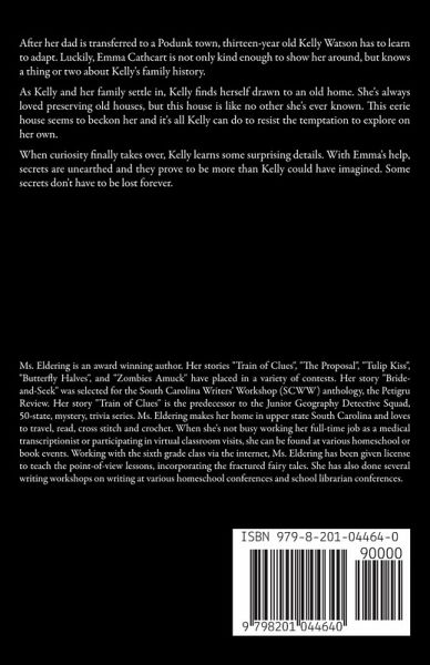 After her dad is transferred to a Podunk town, thirteen-year old Kelly Watson has to learn to adapt. Luckily, Emma Cathcart is not only kind enough to show her around, but knows a thing or two about Kelly's family history. As Kelly and her family settle in, Kelly finds herself drawn to an old home. She's always loved preserving old houses, but this house is like no other she's ever known. This eerie house seems to beckon her and it's all Kelly can do to resist the temptation to explore on her own. When curiosity finally takes over, Kelly learns some surprising details. With Emma's help, secrets are unearthed and they prove to be more than Kelly could have imagined. Some secrets don't have to be lost forever.