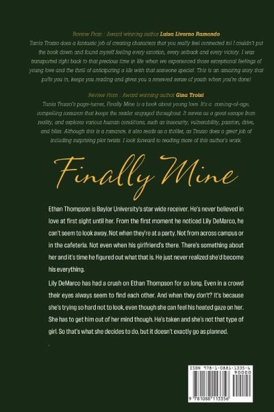 Ethan Thompson is Baylor University's star wide receiver. He's never believed in love at first sight until her. From the first moment he noticed Lily DeMarco, he can't seem to look away. Not when they're at a party. Not from across campus or in the cafeteria. Not even when his girlfriend's there. There's something about her and it's time he figured out what that is. He just never realized she'd become his everything. Lily DeMarco has had a crush on Ethan Thompson for so long. Even in a crowd their eyes always seem to find each other. And when they don't? It's because she's trying so hard not to look, even though she can feel his heated gaze on her. She has to get him out of her mind though. He's taken and she's not that type of girl. So that's what she decides to do, but it doesn't exactly go as planned. A love at first sight football romance for with great friends, crazy exes and a whole lot of chemistry!
