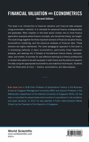 This book is an introduction to financial valuation and financial data analyses using econometric methods. It is intended for advanced finance undergraduates and graduates. Most chapters in the book would contain one or more finance application examples where finance concepts, and sometimes theory, are taught. This book is a modest attempt to bring together several important domains in financial valuation theory, in econometrics modelling, and in the empirical analyses of financial data. These domains are highly intertwined and should be properly understood in order to correctly and effectively harness the power of data and statistical or econometrics methods for investment and financial decision-making. The contribution in this book, and at the same time, its novelty, is in employing materials in basic econometrics, particularly linear regression analyses, and weaving into it threads of foundational finance theory, concepts, ideas, and models. It provides a clear pedagogical approach to allow very effective learning by a finance student who wants to be well equipped in both theory and ability to research the data. This is a handy book for finance professionals doing research to easily access the key techniques in data analyses using regression methods. Students learn all 3 skills at once — finance, econometrics, and data analyses. It provides for very solid and useful learning for advanced undergraduate and graduate students who wish to work in financial analyses, risk analyses, and financial research areas.