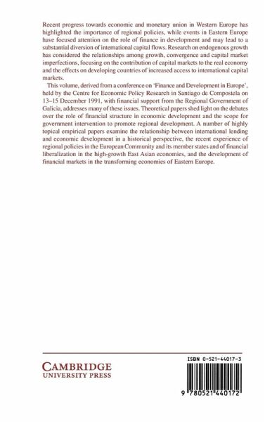 Recent progress towards economic and monetary union in Western Europe has highlighted the importance of regional policies, while events in Eastern Europe have focused attention on the role of finance in development and may lead to a substantial diversion of capital flows. This volume from the Centre for Economic Policy Research addresses the relationships between growth, convergence, and capital market imperfections. Theoretical papers shed light on the debates over the role of financial structure in economic development and the scope for government intervention to promote regional development. Highly topical empirical papers examine the relationship between international lending and economic development in a historical perspective; the recent experience of regional policies in the European Community, and of financial liberalization in high-growth East Asian economies; and the development of financial markets in Eastern Europe.