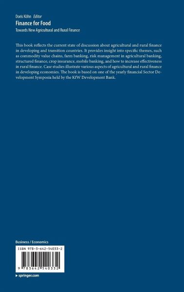 This book reflects the current state of discussion about agricultural and rural finance in developing and transition countries. It provides insight into specific themes, such as commodity value chains, farm banking and risk management in agricultural banking, structured finance, crop insurance, mobile banking and how to increase effectiveness in rural finance. Case studies illustrate various aspects of agricultural and rural finance in developing economies. The book is based on one of the yearly financial Sector Development Symposia held by the KfW Development Bank.