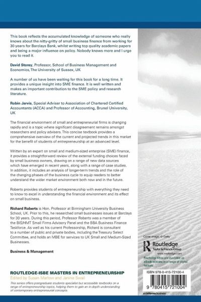 The financial environment of small and entrepreneurial firms is changing rapidly. Written by an SME finance expert, this text provides a straightforward review of the external funding choices faced by small business owners, drawing on a range of new data sources which have emerged in recent years. In addition, it will include an analysis of longer term trends and the role of the changing phases of the business cycle to equip readers to better understand the wider market environment both now and in the future. This concise textbook will provide students of entrepreneurship with everything they need to know to excel in understanding the financial environment and its effect on small business.