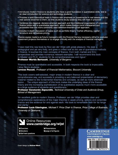 'An excellent guide to modern finance. Professor van der Wijst provides clear and comprehensive explanations of the major theories in asset pricing, options, and corporate finance and the evidence for and against each. His book is remarkable both for its range and clarity.' Louis Ederington, Michael F. Price Chair in Finance, University of Oklahoma