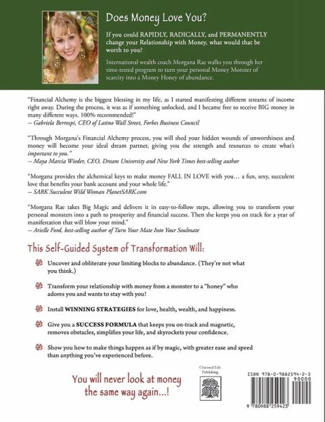 Ancient wisdom and modern technologies bridge the gap between material and spiritual prosperity... This updated and enhanced, 10 Year Anniversary Special Edition of Morgana Rae's international best-selling book, Financial Alchemy: Twelve Months of Magic and Manifestation, transforms your relationship with money from a monster of scarcity into a "honey" who loves you and wants to stay with you! Then this book takes you one step further: This is a TOTAL life transformation process. Inside you will find: > Jealously guarded secrets to enhance and accelerate your ability to attract ONLY what you want into your life. > Magical Money Exercises to expand your container for abundance and rewire you for prosperity, no matter what financial situation you're in right now. > A Manifestation System that's irresistible to success. No more chasing after your goals! Attract them easily. > A Success Journal that blends brain science and strategic planning with a dash of magic, so you can actually see where practical, real-world results show up with ease, flow, and synchronicity.