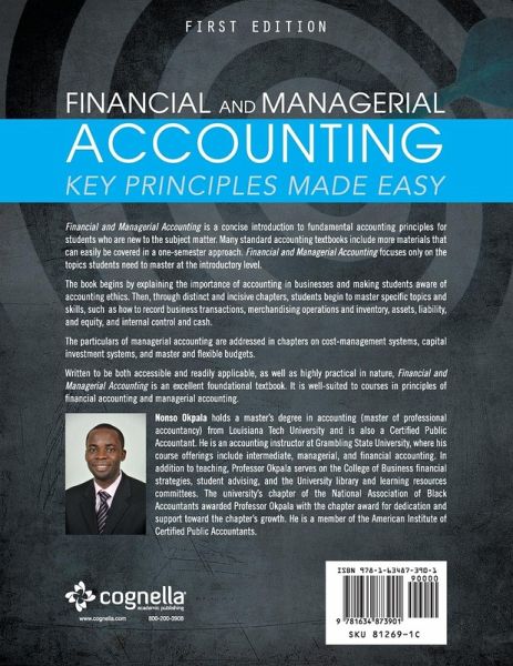 Financial and Managerial Accounting is a concise introduction to fundamental accounting principles for students who are new to the subject matter. Many standard accounting textbooks include more materials than can easily be covered in a one-semester approach. Financial and Managerial Accounting focuses only on the topics students need to master at the introductory level. The book begins by explaining the importance of accounting in businesses and making students aware of accounting ethics. Then, through distinct and incisive chapters, students begin to master specific topics and skills, such as how to record business transactions, merchandising operations and inventory, assets, liability and equity, and internal control and cash. The particulars of managerial accounting are addressed in chapters on cost-management systems, capital investment systems, and master and flexible budgets. Written to be both accessible and readily applicable, as well as highly practical in nature, Financial and Managerial Accounting is an excellent foundational textbook. It is well-suited to courses in principles of financial accounting and managerial accounting.