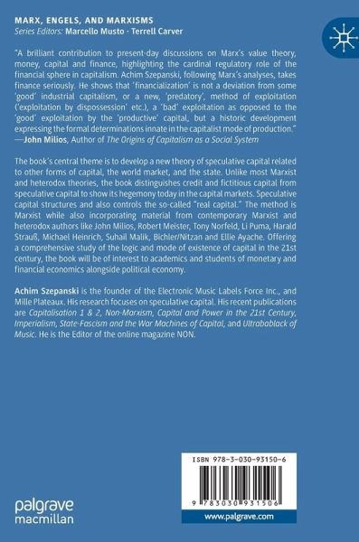 The book's central theme is to develop a new theory of speculative capital related to other forms of capital, the world market, and the state. Unlike most Marxist and heterodox theories, the book distinguishes credit and fictitious capital from speculative capital to show its hegemony today in the capital markets. Speculative capital structures and also controls the so-called "real capital." The method is Marxist while also incorporating material from contemporary Marxist and heterodox authors like John Milios, Robert Meister, Tony Norfeld, Li Puma, Harald Strauß, Michael Heinrich, Suhail Malik, Bichler/Nitzan and Ellie Ayache. Offering a comprehensive study of the logic and mode of existence of capital in the 21st century, the book will be of interest to academics and students of monetary and financial economics alongside political economy.