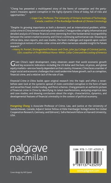 Financial Crime in China builds upon original research into the topic and offers a never-before-seen look at the systemic spread of state-controlled corruption in the form of bank fraud, securities fraud, insider trading, and Ponzi schemes. Cheng presents an authentic picture of financial crime in China by identifying the latest manifestations, analyzing empirical data and case studies, and drawing conclusions about the origin, characteristics, dynamics, and developmental features of financial criminality in the context of political economy.
