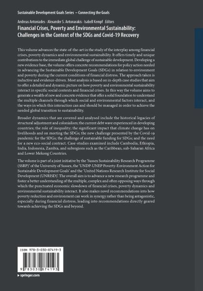 Chapter1. The Crises - Poverty - Sustainability Nexus in the context of the Sustainable Development Goals and Covid-19.- Chapter2. Finance for the common good: Re-thinking the relationship between finance, poverty and sustainability.- Chapter3. Financial Crises, Environment and Transition.- Chapter4. From crisis to crisis: Conundrums of Caribbean existence in the Global Political Economy.- Chapter5. Sustainable Water Resource Development in the Lower Mekong Basin: synergies and trade-offs across borders and sectors.- Chapter6. Government Borrowing, Infrastructure and Human Development in Africa: A Panel Threshold Approach.- Chapter7. Lives, Livelihoods and Environment: The Challenge of Sustainable Development Goals in India.- Chapter8. The Nexus of Structural Adjustment, Economic Growth and Sustainability: The Case Study of Ethiopia.- Chapter9. Layered crises preventing poverty reduction: an analysis of Zambian poverty dynamics and policy implications. Chapter10. Resilience of small-scale fisheries to COVID-19: a case study from North Bali, Indonesia.- Chapter11. Challenges of targeting poor and vulnerable groups to reduce climate change vulnerability: The case of a Water and Sanitation project in Kampong Svay District, Cambodia.- Chapter12. Why recent crises and SDG implementation demand a new eco-social contract.