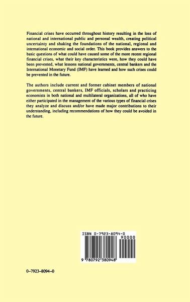 Financial crises have occurred throughout history, resulting in the loss of national and international public and personal wealth, creating political uncertainty and shaking the foundations of the national, regional and international economic and social order. This book provides answers to the basic questions of what could have caused some of the more recent regional financial crises, what their key characteristics were, how they could have been prevented, what lessons national governments, central bankers and the International Monetary Fund (IMF) have learned and how such crises could be prevented in the future.