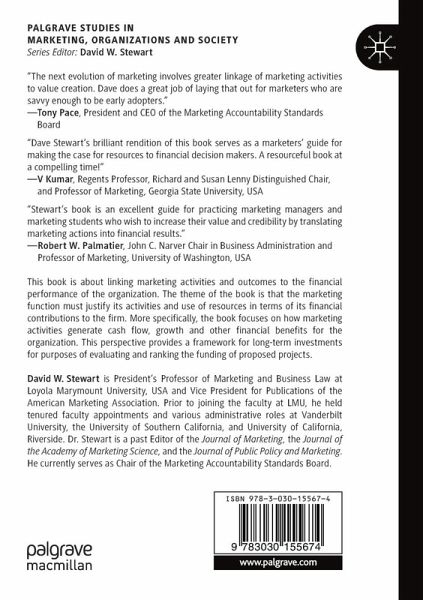This book is about linking marketing activities and outcomes to the financial performance of the organization. The theme of the book is that the marketing function must justify its activities and use of resources in terms of its financial contributions to the firm. More specifically, the book focuses on how marketing activities generate cash flow, growth, and other financial benefits for the organization. This perspective provides a framework for long-term investments for purposes of evaluating and ranking the funding of proposed projects.