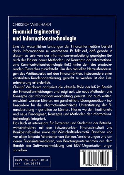 Der Autor analysiert die aktuelle Rolle, der Informations- und Kommunikationstechnologie (IuK) im Bereich der Finanzdienstleistungen und zeigt auf, wie neue Methoden und Konzepte der Informationsverarbeitung genutzt und auch weiterentwickelt werden können, um ganzheitliche Lösungsansätze - insbesondere für die informationstechnische Unterstützung der Finanzberatung - gestalten zu können. Verzeichnis: Der Autor zeigt, wie neue Methoden und Konzepte der Informationsverarbeitung genutzt werden können, um ganzheitliche Lösungsansätze - insbesondere für die informationstechnische Unterstützung der Finanzberatung - gestalten zu können.