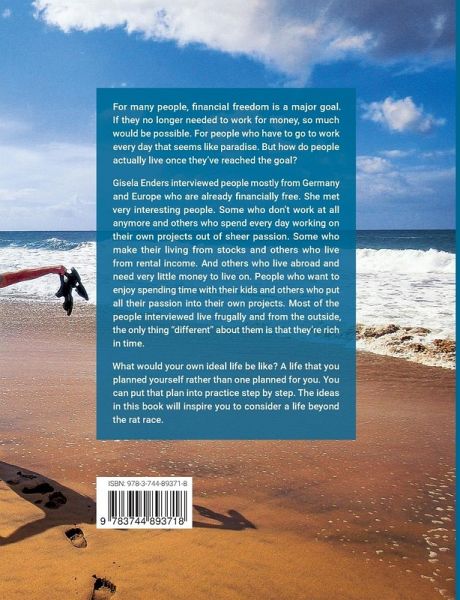 For many people, financial freedom is a major goal. If they no longer needed to work for money, so much would be possible. For people who have to go to work every day that seems like paradise. But how do people actually live once they have reached the goal? Gisela Enders interviewed people mostly from Germany and Europe who are already financially free. She met very interesting people. Some who do not work at all anymore and others who spend every day working on their own projects out of sheer passion. Some who make their living from stocks and others who live from rental income. And others who live abroad and need very little money to live on. People who want to enjoy spending time with their kids and others who put all their passion into their own projects. Most of the people interviewed live frugally and from the outside, the only thing different about them is that they are rich in time. What would your own ideal life be like? A life that you planned yourself rather than one planned for you. You can put that plan into practice step by step. The ideas in this book will inspire you to consider a life beyond the rat race.