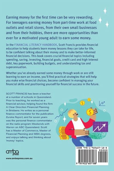 Earning money for the first time can be very rewarding. For teenagers earning money from part-time work at food outlets and retail stores, from their own small businesses and from their hobbies, there are more opportunities than ever for a motivated young adult to earn some money. In the Financial Literacy Handbook, Scott Francis provides financial education to help students learn money lessons they can take for life, to be confident talking about their money and to make better-informed financial decisions. This book covers crucial financial topics including spending, saving, investing, financial goals, credit card and high interest debt, key paperwork, building budgets, and understanding tax and superannuation. Whether you've already earned some money through work or are still learning to earn an income, you'll find practical strategies that will help you make wise financial choices, become confident in managing your financial skills and positioning yourself for financial success in the future.