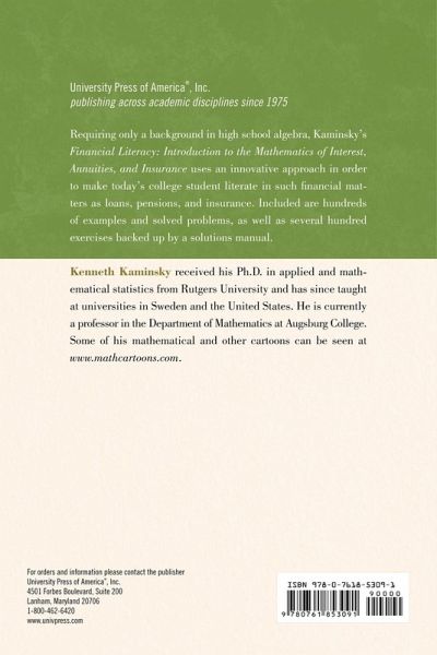 Requiring only a background in high school algebra, this book uses an innovative approach to make today's college student literate in such financial matters as loans, pensions, and insurance. Included are hundreds of examples and solved problems, as well as several hundred exercises backed up by a solutions manual.