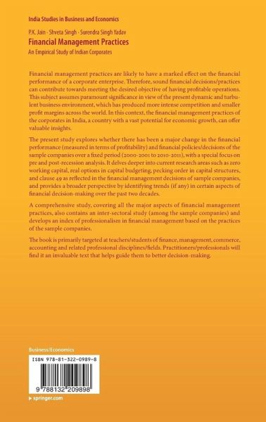 Part One: Background.- Chapter 1: Introduction.- Part Two: Financial Decisions.- Chapter 2: Capital Budgeting Practices.- Chapter 3: Capital Structure Decisions.- Chapter 4: Dividend Policy.- Chapter 5: Working Capital Management.- Part Three: Corporate Governance, Risk Management and Professionalism.- Chapter 6: Corporate Governance.- Chapter 7: Risk Management.- Chapter 8: Index of Professionalism in Financial Decisions.- Part Four: Summary & Conclusions.- Chapter 9: Profitability Analysis.- Chapter 10: Concluding Observations.