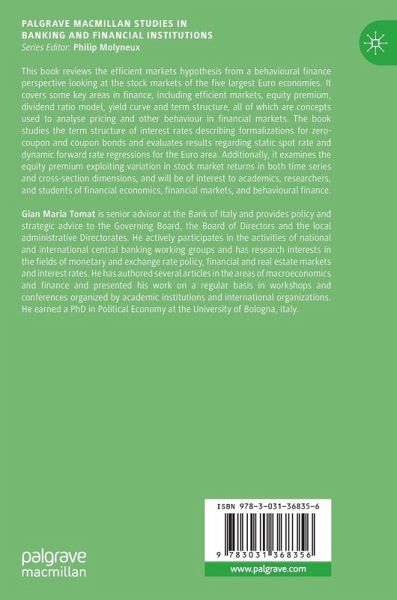 This book reviews the efficient markets hypothesis from a behavioural finance perspective looking at the stock markets of the five largest Euro economies. It covers some key areas in finance, including efficient markets, equity premium, dividend ratio model, yield curve and term structure, all of which are concepts used to analyse pricing and other behaviour in financial markets. The book studies the term structure of interest rates describing formalizations for zero-coupon and coupon bonds and evaluates results regarding static spot rate and dynamic forward rate regressions for the Euro area. Additionally, it examines the equity premium exploiting variation in stock market returns in both time series and cross-section dimensions, and will be of interest to academics, researchers, and students of financial economics, financial markets, and behavioural finance.