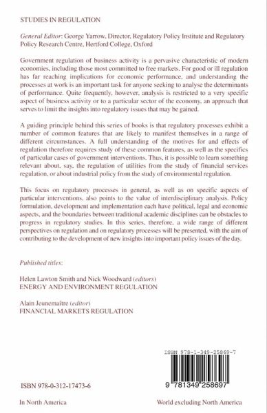 List of Contributors - List of Abbreviations - Preface: The Grounds for Government's Intervention in Financial Markets Regulation; Q.Davies - Introduction: Financial Regulation: From Economic Analysis to Practical Experience; H.Dumez & A.Jeunema"tre - PART 1: THE ASSESSMENT OF FINANCIAL REGULATION - The Assessment of Financial Regulation from a Regulator's Perspective; M.Blair - Regulating Financial Markets as Preserving Key Balances; P.Fleuriot - Financial Markets Regulation: The Role of a Separate Competition Authority; C.Wright - PART 2: FINANCIAL INNOVATION AND MARKETS REGULATION - Changes in Technology and the Removal of Frontiers Between Regulated and Non-Regulated Markets; P.Stephan - Facing New Regulatory Challenges: The Case of Proprietary Trading Systems; F.Champarnaud - The Market Assessment; N.Weinreb - Efficiency and Stability Considerations in the Design of Prudential Ratios: Some Reflections; C.de Boissieu - PART 3: SELF REGULATORY ISSUES - The Emergence of a Moral Code of Practice without Legal Existence: The Take-over Panel; T.P.Lee - Function, Objectives and Assessment of a Self Regulatory Organisation: The Securities and Futures Authority; R.Wright - PART 4: FRAUD ISSUES - Self Regulation and Financial Fraud; J.Loubert - Legal Aspects and Financial Fraud; P.Mitchard - PART 5: THE EUROPEAN PERSPECTIVE - The Mutual Recognition of Financial National Regulations and Regulators; C.Cruickshank - Experiencing Regulation Harmonisation: The UK Implementation of European Services Directives; A.Alcock - Some Aspects of the Italian Financial Market and its Regulation; M.Armanno - PART 6: AN AMERICAN PERSPECTIVE - An Overview of the US Regulatory System by a Practitioner; H.L.Pitt - Index