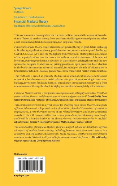 "Financial Markets Theory is comprehensive, rigorous, and yet highly accessible. With their second edition, Barucci and Fontana have set an even higher standard!"Darrell Duffie, Dean Witter Distinguished Professor of Finance, Graduate School of Business, Stanford University