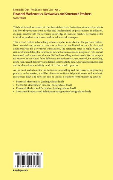 This second edition substantially extends, updates and clarifies the previous edition. New materials and enhanced contents include, but not limited to, the role of central counterparties for derivatives transactions, the reference rates to replace LIBOR, risk-neutral modelling for futures and forward, discussions and analysis on risk-neutral framework and numéraires, discrete dividend modelling, variance reduction techniques for Monte Carlo method, finite difference method analysis, tree method, FX modelling, multi-name credit derivatives modelling, local volatility model, forward variance model and local-stochastic volatility model to reflect market practice.
