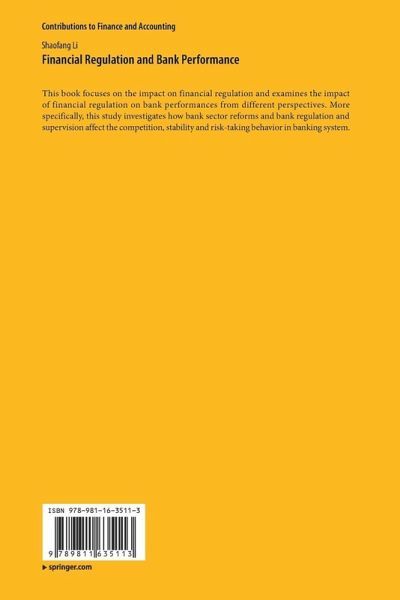 This book focuses on the impact on financial regulation and examines the impact of financial regulation on bank performances from different perspectives. More specifically, this study investigates how bank sector reforms and bank regulation and supervision affect the competition, stability and risk-taking behavior in banking system.