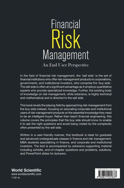 In the field of financial risk management, the 'sell side' is the set of financial institutions who offer risk management products to corporations, governments, and institutional investors, who comprise the 'buy side'. The sell side is often at a significant advantage as it employs quantitative experts who provide specialized knowledge. Further, the existing body of knowledge on risk management, while extensive, is highly technical and mathematical and is directed to the sell side. This book levels the playing field by approaching risk management from the buy side instead, focusing on educating corporate and institutional users of risk management products on the essential knowledge they need to be an intelligent buyer. Rather than teach financial engineering, this volume covers the principles that the buy side should know to enable it to ask the right questions and avoid being misled by the complexity often presented by the sell side. Written in a user-friendly manner, this textbook is ideal for graduate and advanced undergraduate classes in finance and risk management, MBA students specializing in finance, and corporate and institutional investors. The text is accompanied by extensive supporting material including exhibits, end-of-chapter questions and problems, solutions, and PowerPoint slides for lecturers.