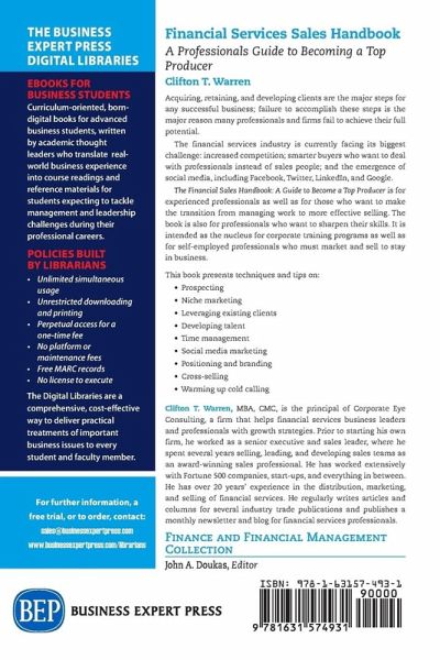 Acquiring, retaining, and developing clients are the major steps for any successful business; failure to accomplish these steps is the major reason many professionals and firms fail to achieve their full potential.The financial services industry is currently facing its biggest challenge: increased competition; smarter buyers who want to deal with professionals instead of sales people; and the emergence of social media, including Facebook, Twitter, LinkedIn, and Google. The Financial Sales Handbook: A Guide to Become a Top Producer is for experienced professionals as well as for those who want to make the transition from managing work to more effective selling. The book is also for professionals who want to sharpen their skills. It is intended as the nucleus for corporate training programs as well as for self-employed professionals who must market and sell to stay in business.