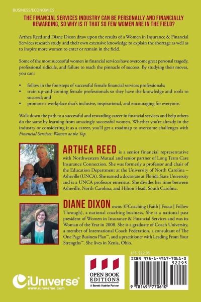 The financial services industry can be personally and financially rewarding, so why is it that so few women are in the field? Arthea Reed and Diane Dixon draw upon the results of a Women in Insurance & Financial Services research study and their own extensive knowledge to explain the shortage as well as to inspire more women to enter or remain in the field. Some of the most successful women in financial services have overcome great personal tragedy, professional ridicule, and failure to reach the pinnacle of success. By studying their moves, you can: follow in the footsteps of successful female financial services professionals; train up-and-coming female professionals so they have the knowledge and tools to succeed; and promote a workplace that's inclusive, inspirational, and encouraging for everyone. Walk down the path to a successful and rewarding career in financial services and help others do the same by learning from amazingly successful women. Whether you're already in the industry or considering it as a career, you'll get a roadmap to overcome challenges with Financial Services: Women at the Top.